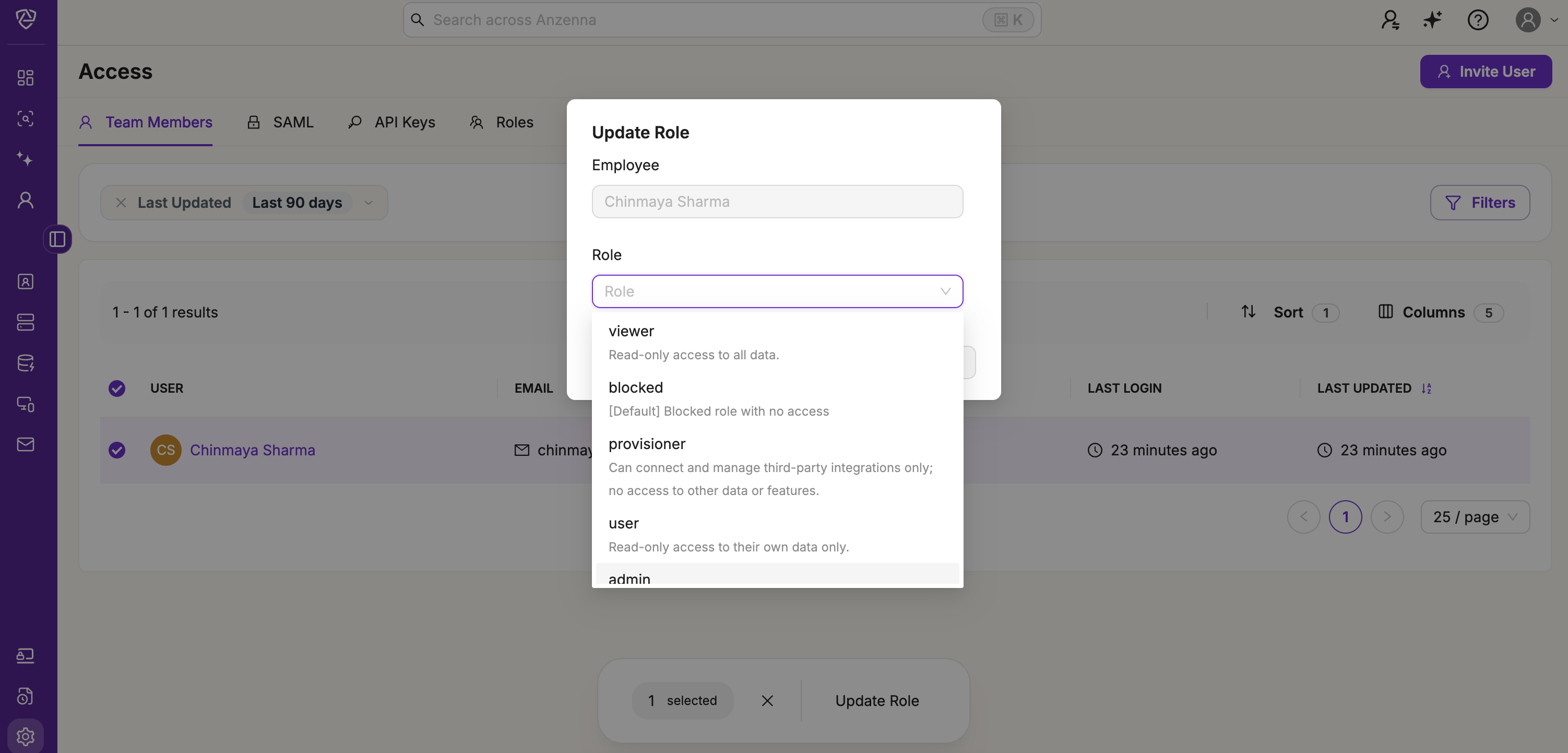 Anzenna uses role-based access control (RBAC) to manage user permissions and ensure appropriate access to security data and platform features.