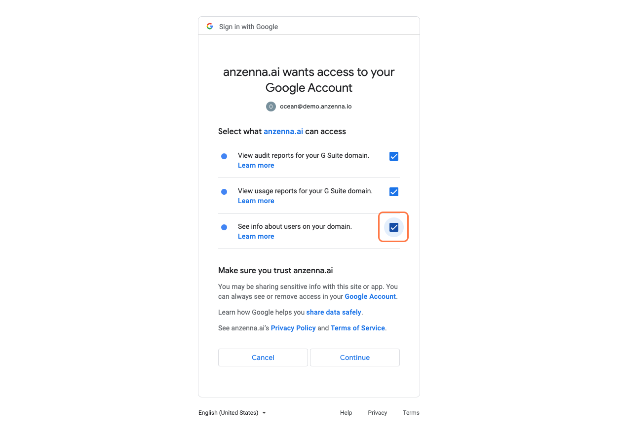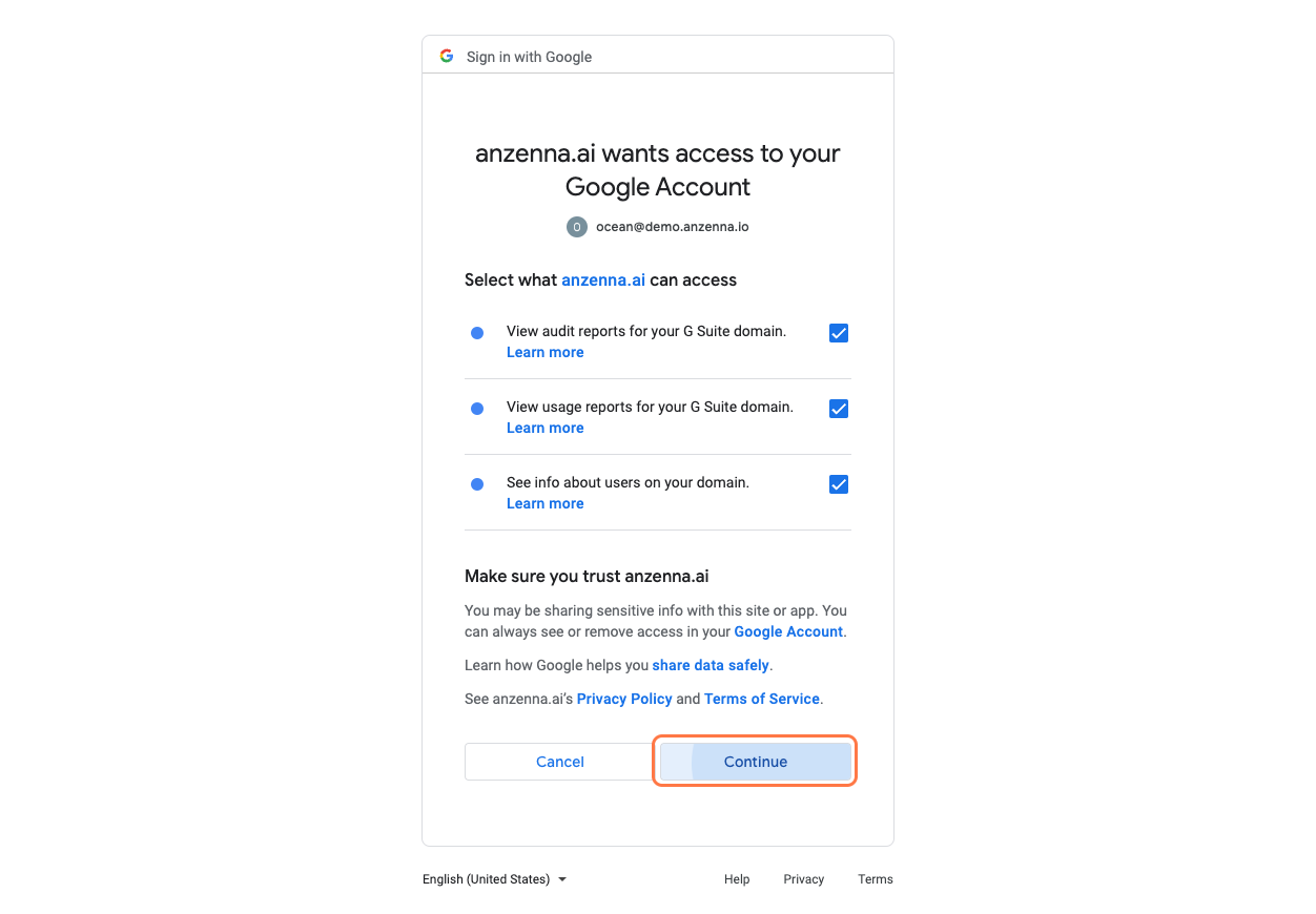 Connect Google Workspace to Anzenna