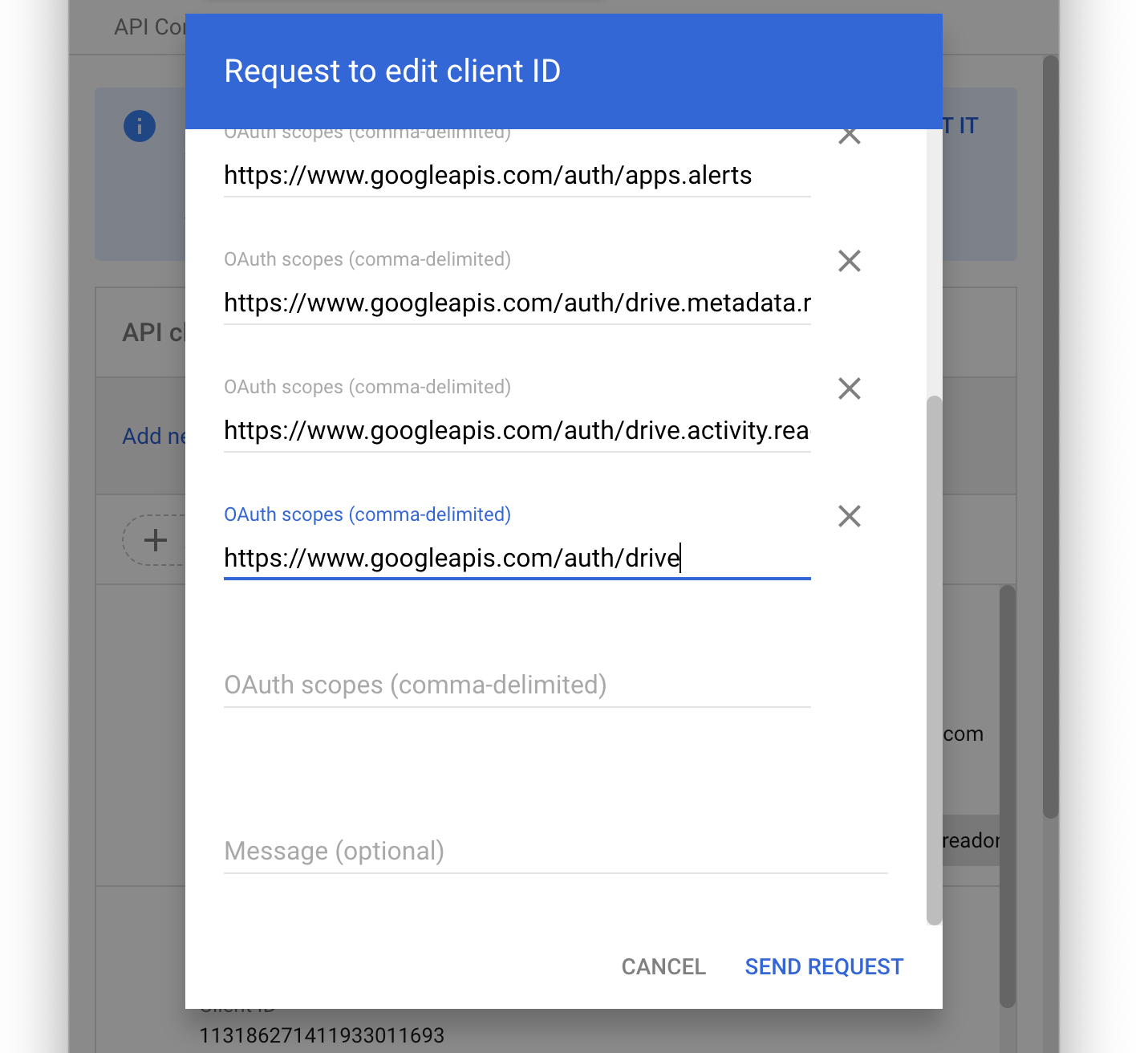 - Add the required OAuth scopes one by one:
