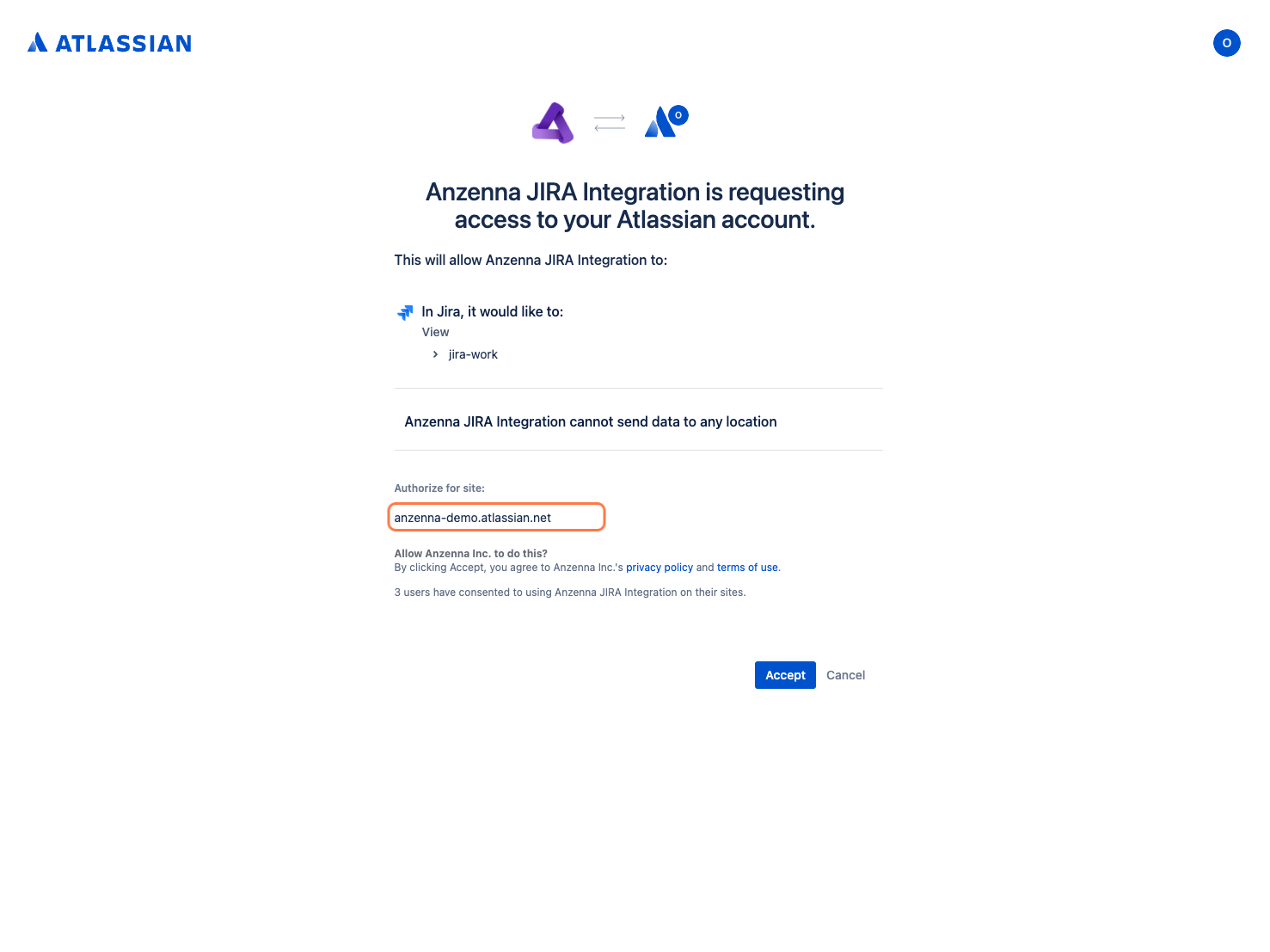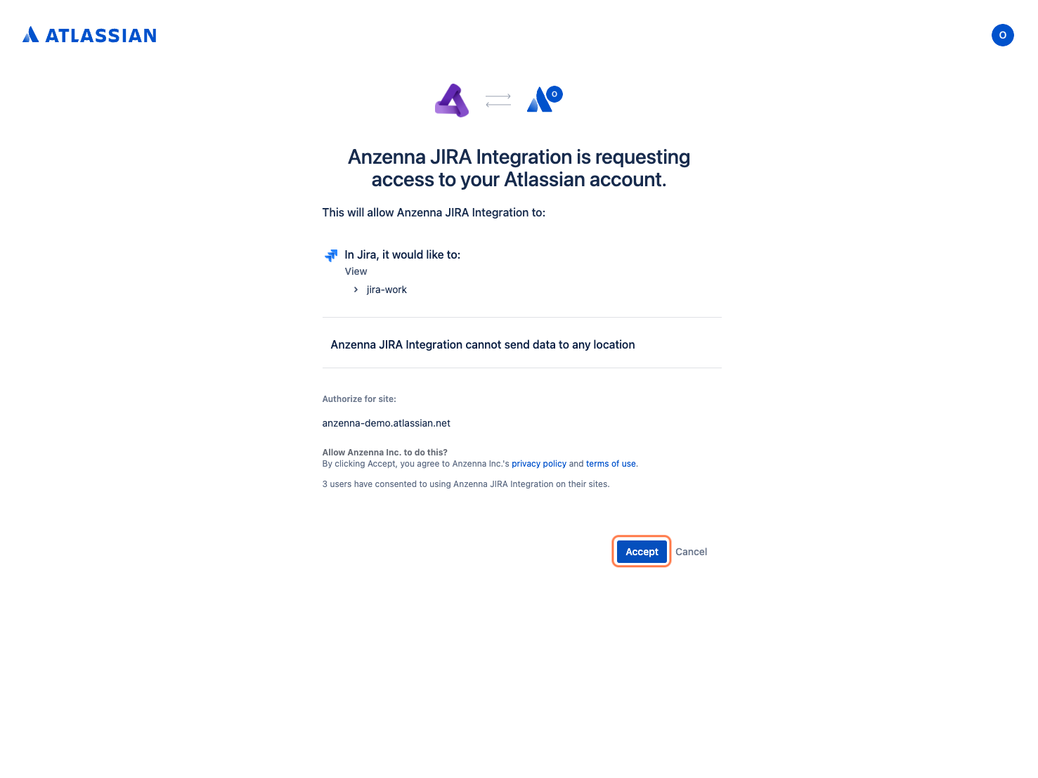 - Click Accept to grant Anzenna access