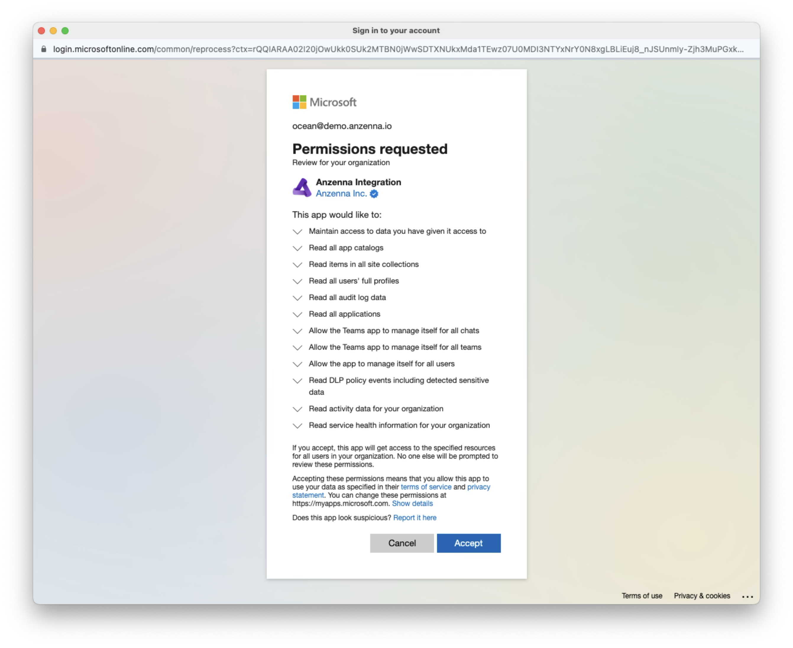 You are all set! Anzenna is now fully connected to Microsoft 365 with the capabilities you have configured.