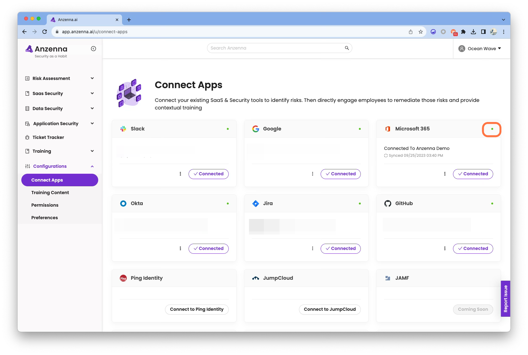 - Your Microsoft account is now connected to Anzenna.