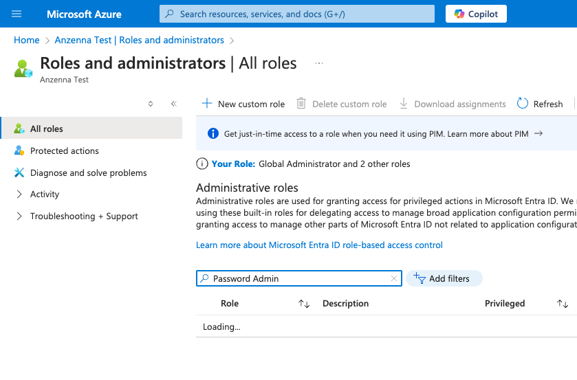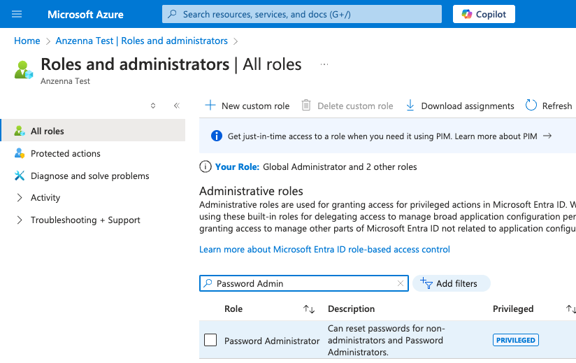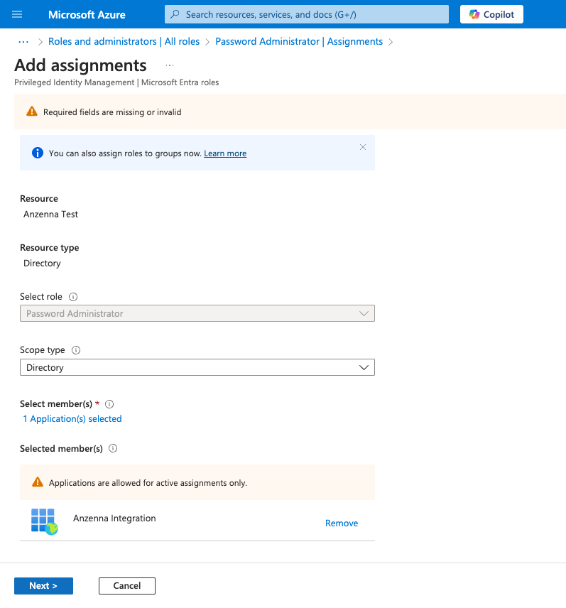 Step 2: Grant Anzenna write permissions for password reset: