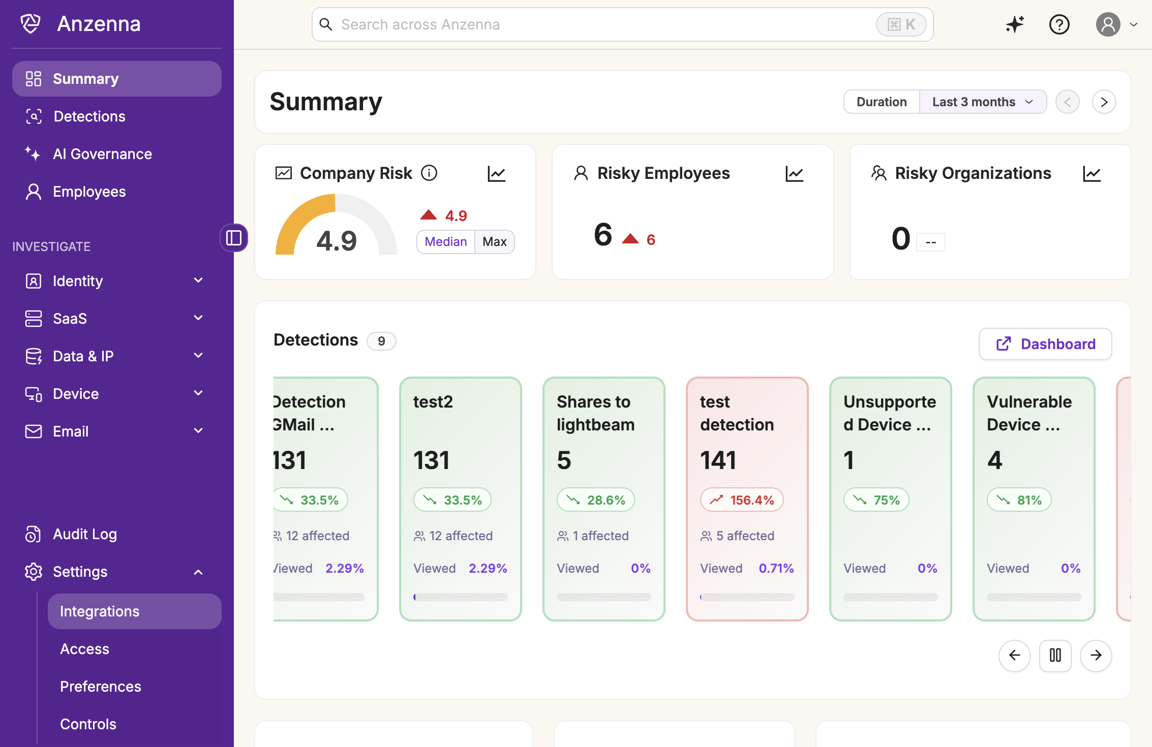 Netskope is now connected to Anzenna. Anzenna will begin ingesting security events and analytics from your Netskope tenant.