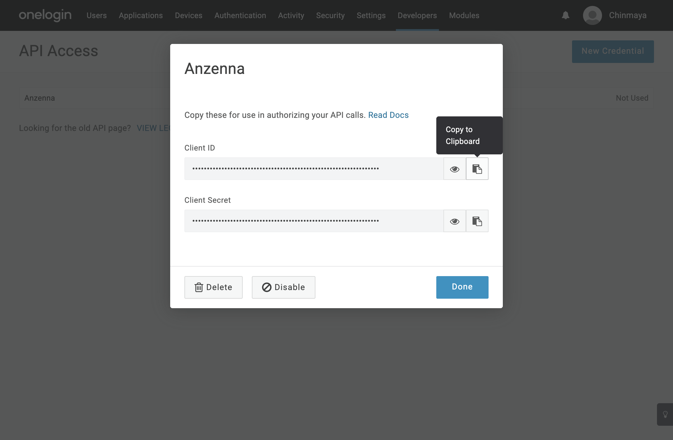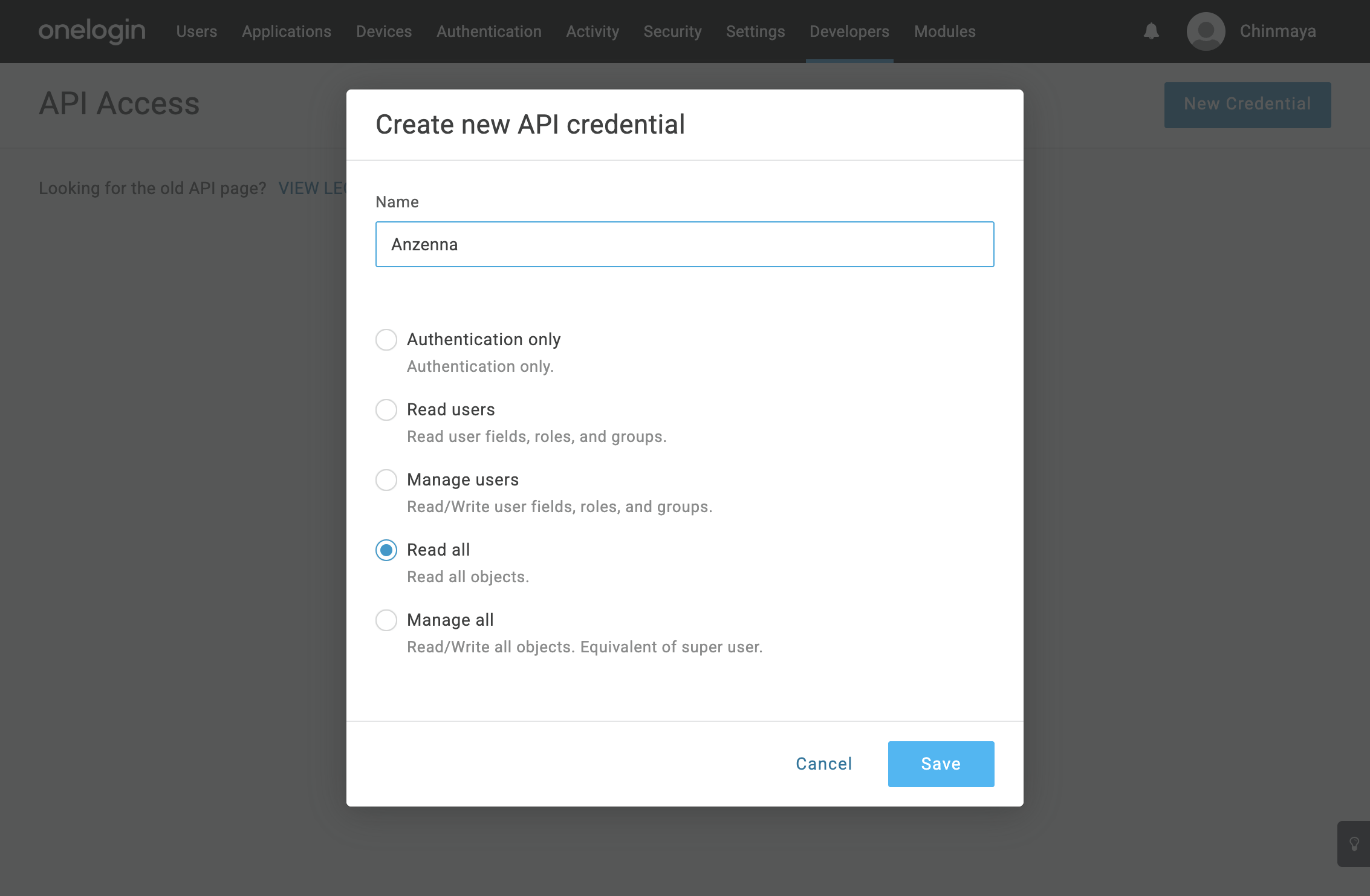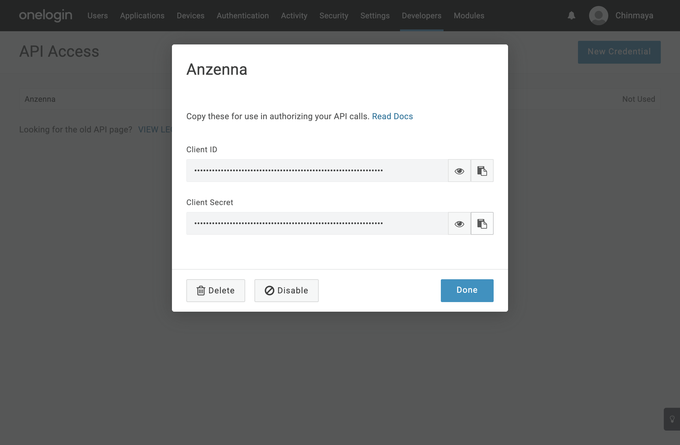 Anzenna is now connected to OneLogin and will begin monitoring your identity and access management data.