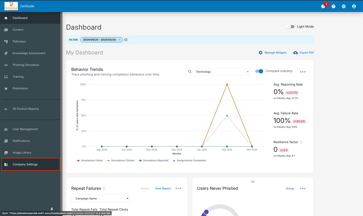 You are all set! Anzenna is now connected to Proofpoint ZenGuide and will begin monitoring your security awareness training data.
