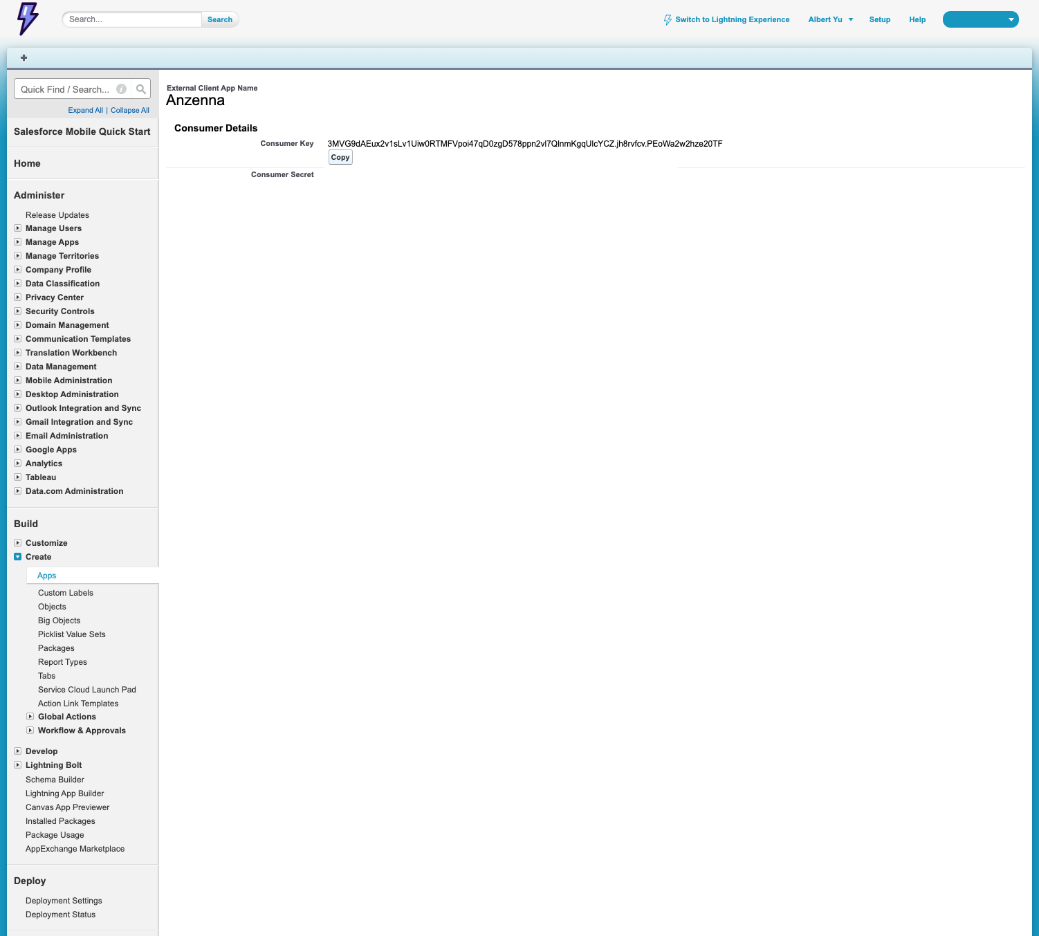 - Click on Consumer Key and Secret. Salesforce will send you an email to verify your identity.