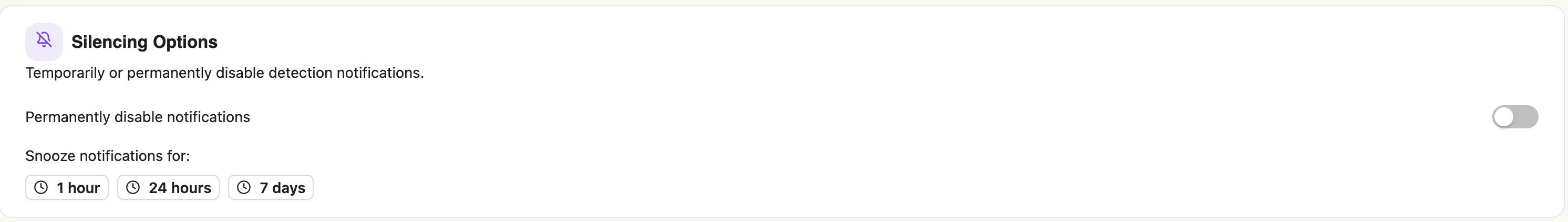 - Silencing options (permanent disable, snooze)