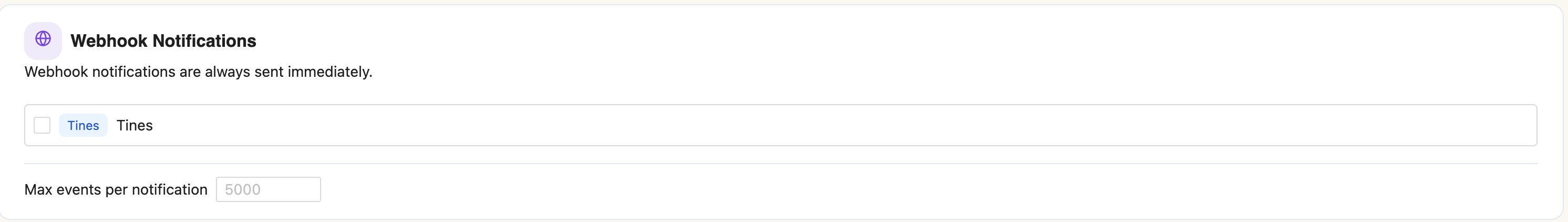 Optionally adjust Max events per notification (default: 5,000) to control payload size
